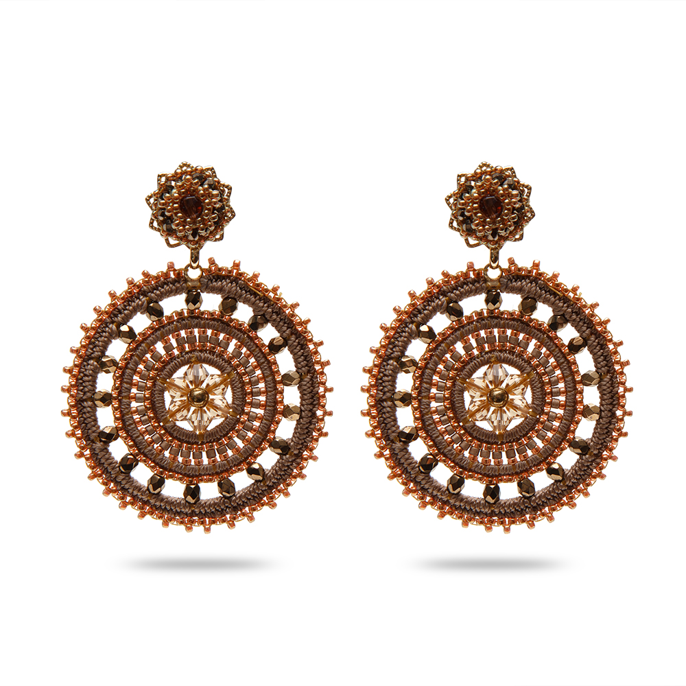 Stud Earrings with Mandala Pendant, MAQ